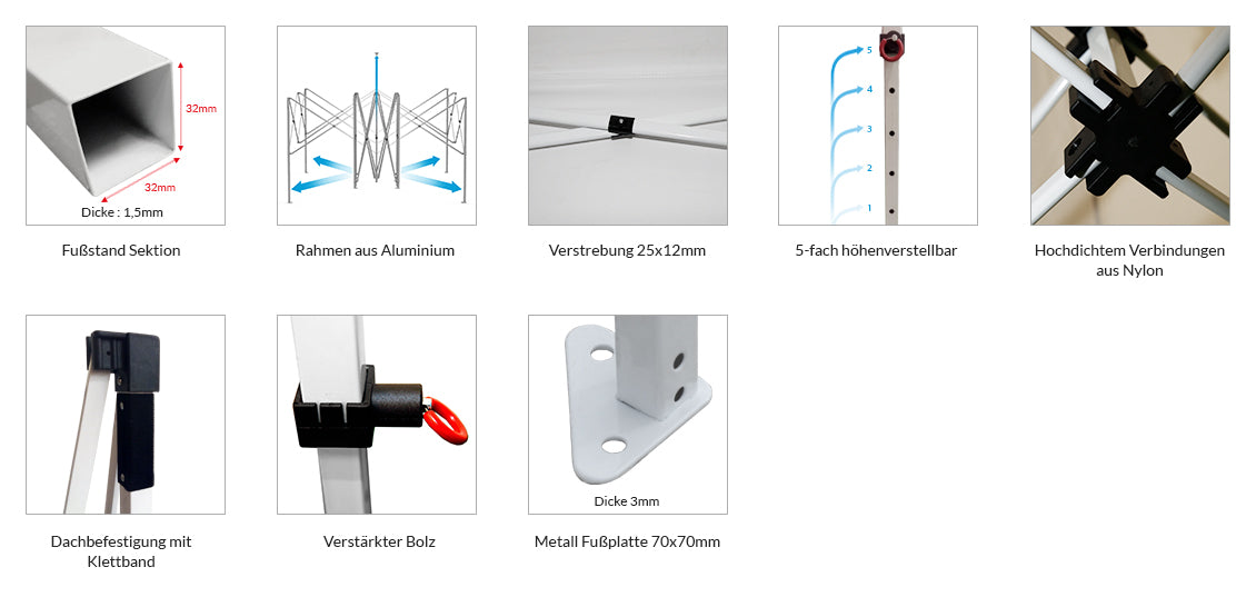 La gamme ACIER 32 vous propose des tentes pliantes conçues pour des utilisations régulières dans le cadre d’activités diverses et variées : stands sur les marchés, les brocantes et les foires, prestations de mariage, banquets et événements d’entreprise, stands d’événements sportifs et culturels, stands d’information, point de vente, stands de kermesse, abri de protection, auvent pour terrasse… Ces tentes pliantes satisferont aussi bien les professionnels, les particuliers, associations et les collectivités qui les utilisent conformément à nos préconisations.