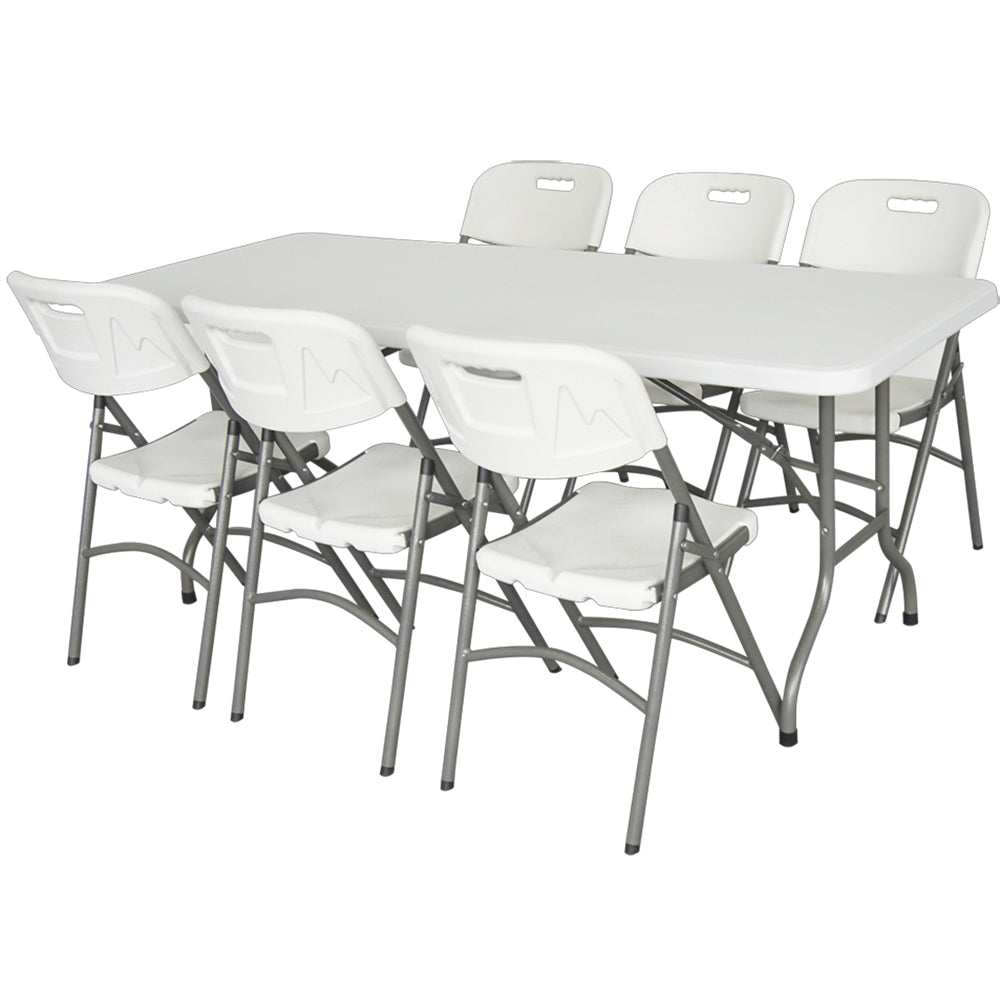 Table de réception pieds pliants plateau 4.5cm uni 183cm Blanc